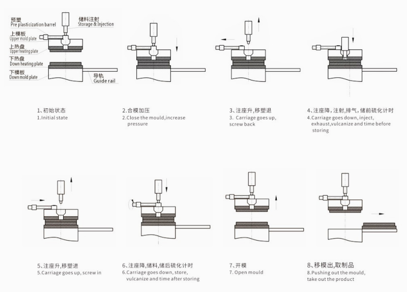 - 注射量及开合模行程由电子尺精确测量和控制,开合模多级速度调节;